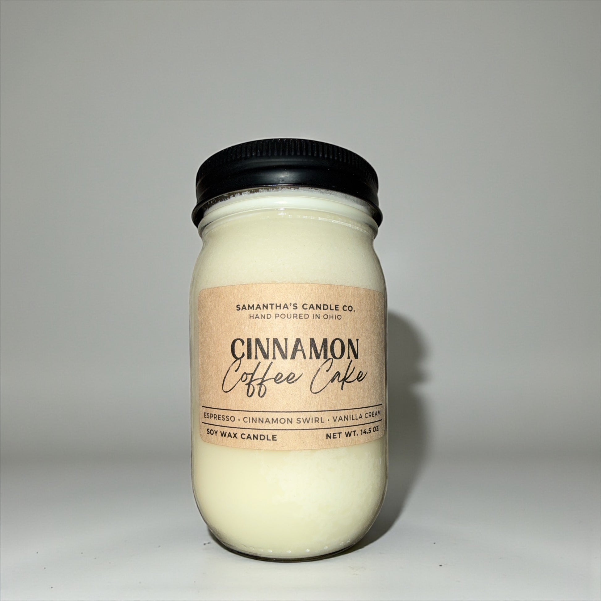Warm and inviting. This scent features a delicious blend of sweet cinnamon, vanilla, buttercream, and espresso. Smells exactly like cinnamon coffee cake warm out of the oven!